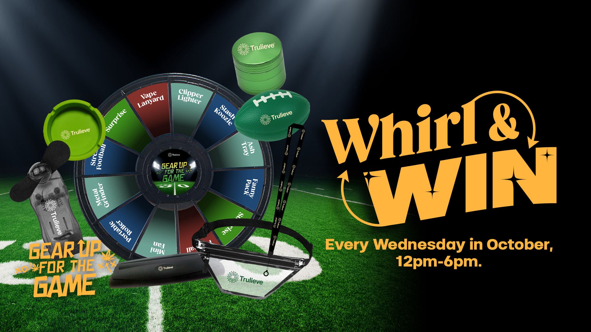 Join us every Wednesday in October from 12 PM – 6 PM at select Trulieve locations across Florida for Whirl and Win Wednesday’s. Spin our prize wheel and walk away with exclusive Trulieve swag!