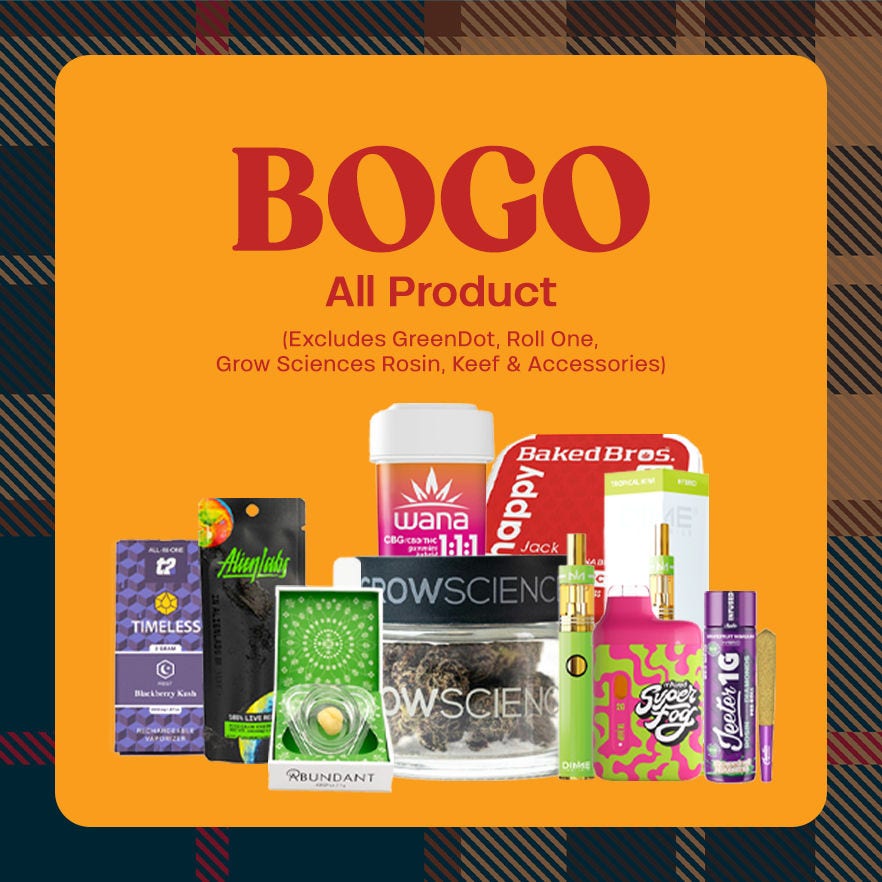 | ALL PRODUCTS - Buy One Get One Free (Excludes GreenDot, Roll One, Grow Sciences Rosin, Keef Cola, & Accessories) |