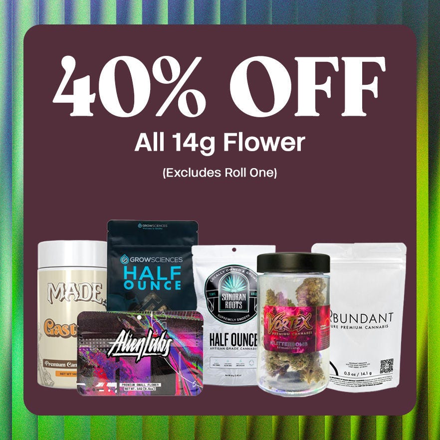 | MINI MONDAY - 40% Off All 14g Flower (Excludes Roll One) |