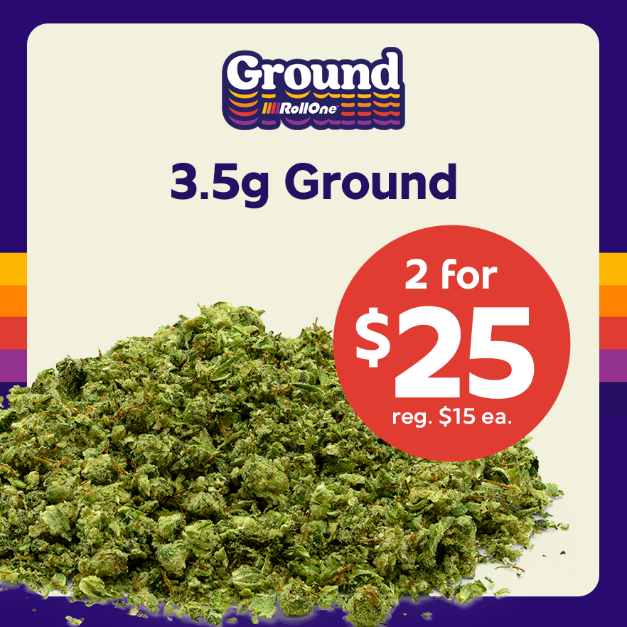 Stock up on 3.5g Ground from Roll One with this 2 for $25 deal — smooth, simple, and perfect for packing. Regularly $15 each, it’s a solid save on a go-to staple.