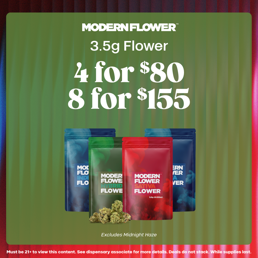 Stock up on premium Modern Flower strains with this unbeatable deal—get 4 eighths for $80 or 8 for $155. Perfect for variety and value.