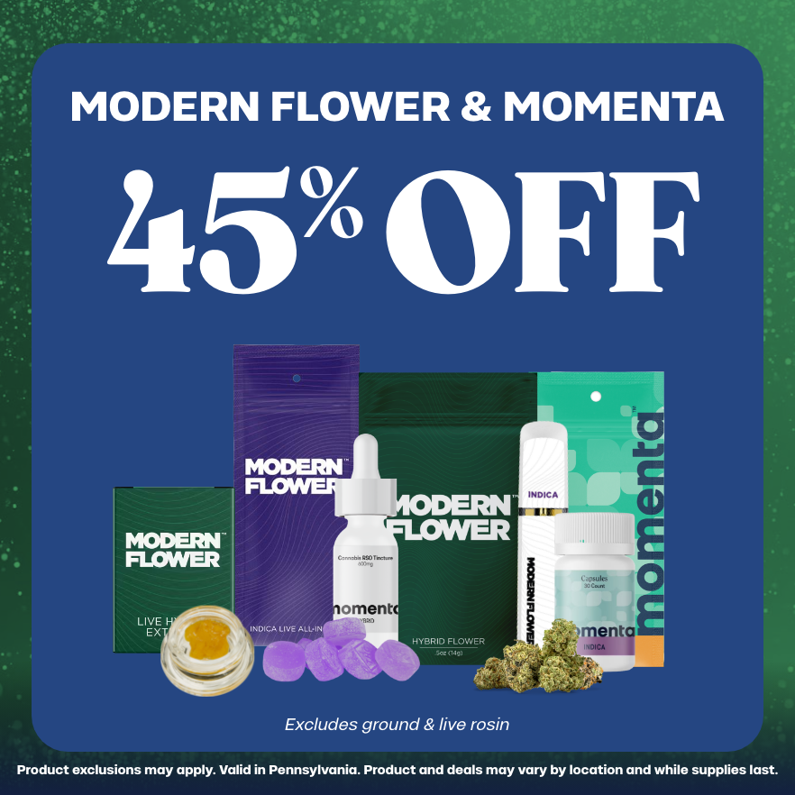 Go big with this incredible offer! For a limited time, enjoy 45% off Modern Flower & Momenta products. Premium quality at unbeatable prices—stock up now before these deals disappear!
