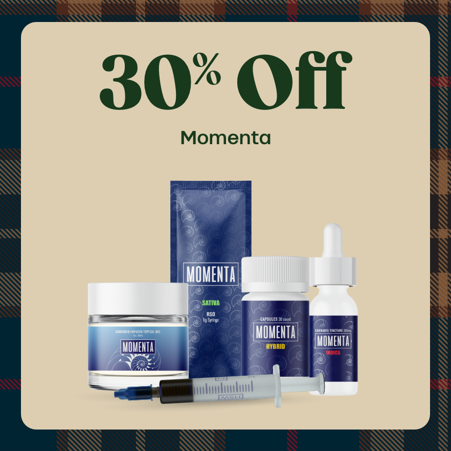 Your wellness journey just got better! Enjoy 30% off Momenta products, designed to support balance and relief. From tinctures to topicals, Momenta delivers quality you can trust—now at a price you’ll love.
